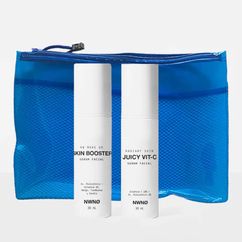 Set Luminosidad natural Incluye: - Necessaire impermeable NWNØ - JUICY VIT C serum de vitamina C 18% ácido ascórbico puro + 2 % de Ácido Hialuronico , antioxidante natural para revertir radicales libres , manchas y signos de la edad ,aporta luminosidad y estimula la producción de colageno brindando una piel con apariencia más pulposa y radiante. - NO MAKE UP SKIN BOOSTER Serum de Acido Hialuronico + Vitamina B5 ( pantenol) y extracto de Mango , Frambuesa y Sandía, mantiene hidratada la piel , la protege y regenera y suma antioxidantes y vitaminas gracias a los extractos de frutas naturales .
